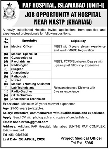 Are you a dedicated healthcare professional looking to make an impact in a modern medical environment? PAF Hospital Islamabad (Unit-I) has announced exciting job opportunities for a newly established hospital located near NASTP (Kharian).