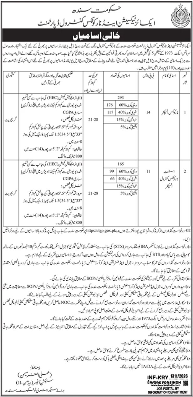 Age Limit: 21 to 28 years (subject to general age relaxation policies of the Sindh Government).Public sector vacancies